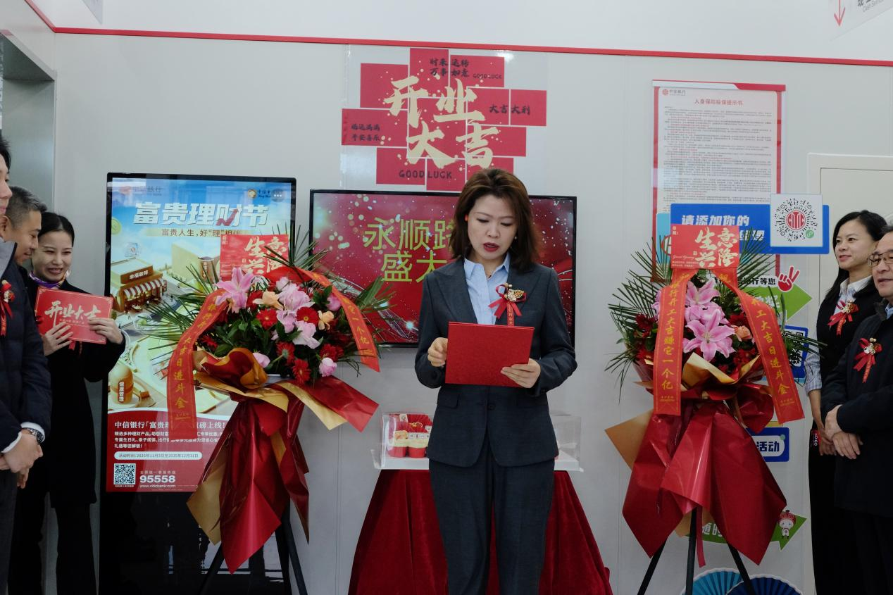 遷址開業(yè)儀式現(xiàn)場,中信銀行長春分行副行長李敏、分行各部門負責人、金融同業(yè)機構(gòu)、合作企業(yè)代表以及社區(qū)工作人員代表等共同出席了揭牌儀式。中信銀行長春分行副行長李敏在致辭中表示,永順路周邊區(qū)域是長春凈月高新區(qū)蓬勃發(fā)展的新興板塊,金融服務(wù)需求日益增長。永順路支行的遷址開業(yè),意味著中信銀行服務(wù)觸角進一步延伸,更緊密地融入當?shù)厣鐓^(qū)生活與商業(yè)發(fā)展,中信銀行長春分行將不斷探索,推動“讓財富有溫度”的品牌主張走向共識,在金融服務(wù)高質(zhì)量發(fā)展中持續(xù)發(fā)揮價值引領(lǐng)作用。