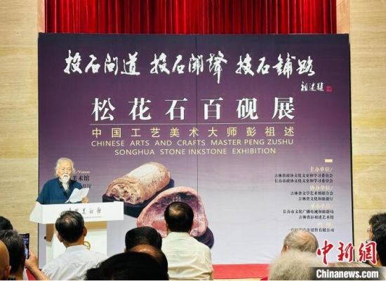 當(dāng)天,以“投石問道 投石聞聲 投石鋪路”為主題的“中國工藝美術(shù)大師彭祖述松花石百硯展”在中國美術(shù)館舉行,吸引大批觀眾到此一睹百硯風(fēng)采。