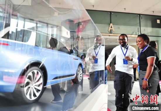 在一臺發(fā)動機(jī)前,杜喬駐足許久,一邊仔細(xì)看著復(fù)雜的參數(shù),一邊和同伴交流。他感慨中國新能源汽車產(chǎn)業(yè)的技術(shù)水平之高,應(yīng)用成果之多!拔椰F(xiàn)在做的課題是儲能系統(tǒng),與智能控制、電力設(shè)備有關(guān)!倍艈陶f,自己的研究成果未來可以應(yīng)用于汽車領(lǐng)域。