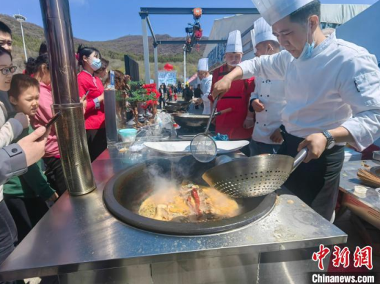 廚師現(xiàn)場制作開江魚邀游客品嘗。 石洪宇/攝