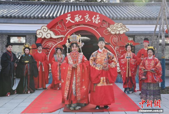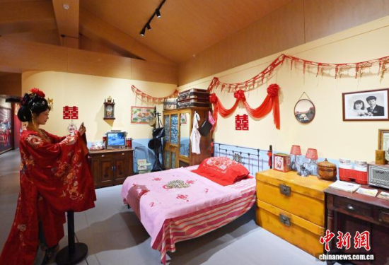 11月7日,偽滿皇宮博物院主辦的《天配良緣——近現(xiàn)代婚戀婚俗實(shí)物展》于長(zhǎng)春開幕。展覽通過(guò)婚書、嫁妝等300余件民間實(shí)物,帶領(lǐng)參觀者沉浸式感受不同年代的婚禮婚俗,F(xiàn)場(chǎng)通過(guò)漢服走秀、嗩吶演奏等演出,展現(xiàn)傳統(tǒng)婚儀魅力。中新社記者 張瑤 攝
