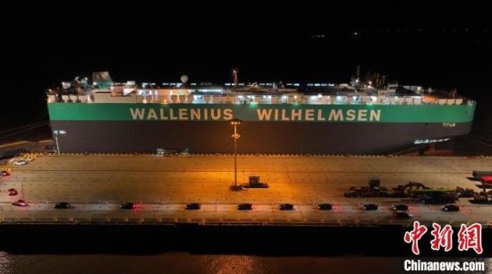 “提圖斯”號滾裝船在南港碼頭作業(yè)。(洋山邊檢站供圖)