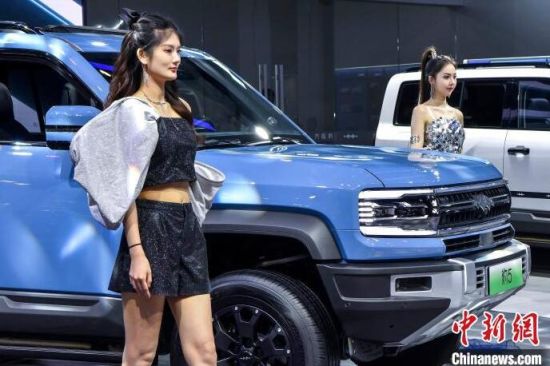 9月13日,海南?,車模助陣海南金秋車展。當日,因超強臺風“摩羯”而兩度延期的2024海南金秋車展暨智能網(wǎng)聯(lián)新能源車展在?谂e行。作為臺風災后海南的首場車展,本次展出面積達5萬平方米,共有近百個汽車品牌參展,其中新能源車型占比70%。中新社記者 駱云飛 攝
