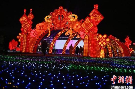 12月27日,吉林松原,數(shù)百組花燈流光溢彩,營造出濃厚的新年氛圍,吸引市民前來觀賞。