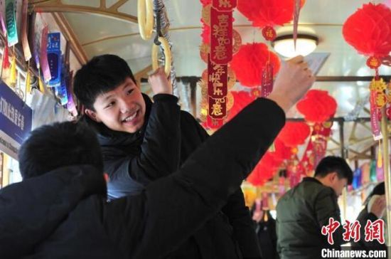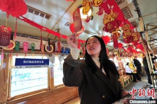 乘電車、猜燈謎……2月24日元宵節(jié),吉林長(zhǎng)春54路有軌電車文旅專列上很熱鬧。該專列采用復(fù)古裝飾,是當(dāng)?shù)氐摹熬W(wǎng)紅”打卡點(diǎn)。當(dāng)天,長(zhǎng)春市綠園區(qū)“歡歡喜喜過(guò)大年 紅紅火火鬧元宵”元宵燈謎會(huì)舉行,該專列是活動(dòng)地點(diǎn)之一,不少市民專程趕來(lái)體驗(yàn)。