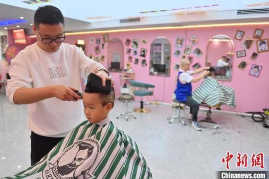 理發(fā)師在為孩子“剃龍頭”。張瑤 攝理發(fā)師在為孩子“剃龍頭”。張瑤 攝理發(fā)師也為孩子們特別設(shè)計了各式有趣的造型。張瑤 攝理發(fā)師在為孩子“剃龍頭”。張瑤 攝理發(fā)師也為孩子們特別設(shè)計了各式有趣的造型。張瑤 攝