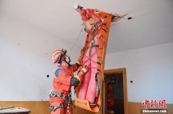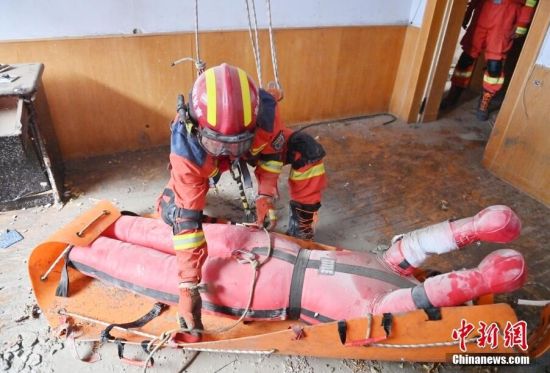 圖為救援隊(duì)員進(jìn)行綜合營(yíng)救訓(xùn)練。張瑤 攝