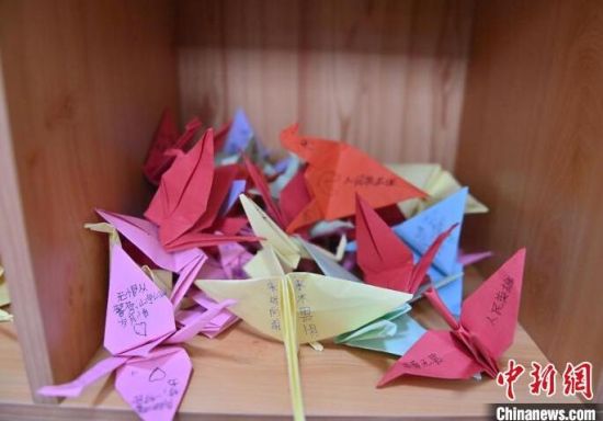 這些千紙鶴是轄區(qū)學生們送來的禮物,每個千紙鶴上面都有一句祝福的話,讓“木蘭警務團”的女警們十分感動!埇 攝