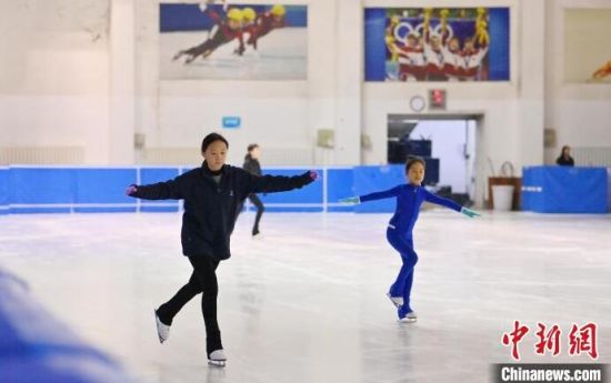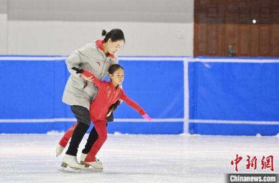 8月14日,在長(zhǎng)春市冬季運(yùn)動(dòng)管理中心內(nèi),小運(yùn)動(dòng)員在進(jìn)行花樣滑冰訓(xùn)練。正值暑假,花滑小將們?cè)诮叹殏兊闹笇?dǎo)下積極練習(xí),為了自己的體育夢(mèng)想拼搏。中新社記者 張瑤 攝