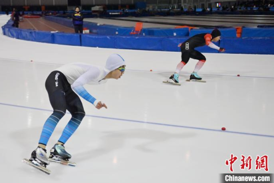 11月15日,2024-2025年度吉林省青少年速度滑冰錦標(biāo)賽在吉林省速滑館開賽,來自全省各地500余名運(yùn)動員參賽。該錦標(biāo)賽是吉林省青少年A級賽事。為期三天的時間里,運(yùn)動員們按照年齡分成4個組別,圍繞54個競賽小項(xiàng)進(jìn)行比拼。圖為運(yùn)動員在激烈比拼。中新社記者 張瑤 攝