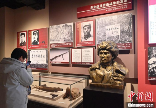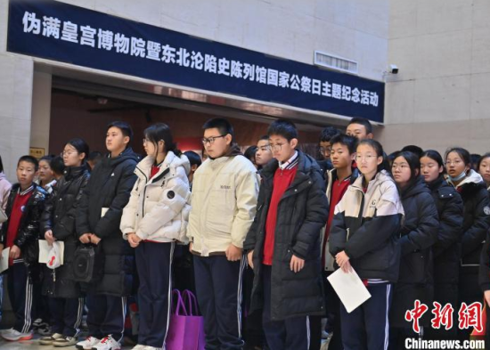 12月13日,在位于吉林長(zhǎng)春的東北淪陷史陳列館,民眾在向英烈名錄獻(xiàn)花。當(dāng)天,偽滿皇宮博物院暨東北淪陷史陳列館聯(lián)合社會(huì)各界人士,共同舉辦“千秋忠烈 百世遺芳”南京大屠殺死難者國(guó)家公祭日悼念活動(dòng),沉痛悼念南京大屠殺死難同胞以及在抗日戰(zhàn)爭(zhēng)中獻(xiàn)出生命的革命英烈。中新社記者 張瑤 攝