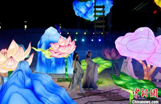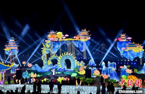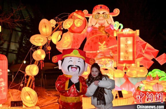 2025年1月1日晚,游客在位于吉林長春的長影世紀城欣賞花燈。當天,長影世紀城內(nèi)超百組炫彩花燈同時點亮,營造出一個夢幻般的璀璨世界,為新年的到來增添喜慶氣氛。中新社記者 張瑤 攝