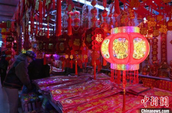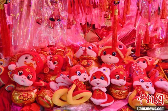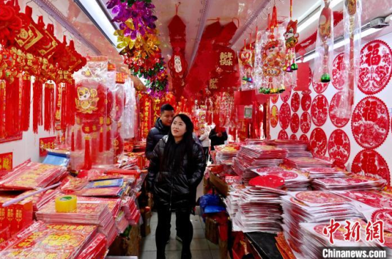 1月10日,吉林長春,市民在選購蛇年新春飾品。隨著農歷春節(jié)的臨近,燈籠、春聯、年畫、福字等新春飾品逐漸熱銷。中新社記者 張瑤 攝
