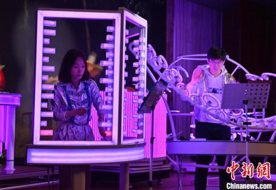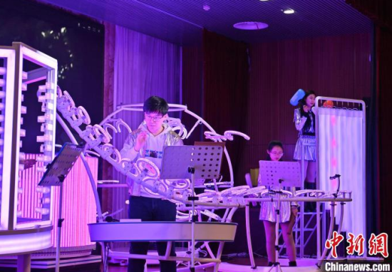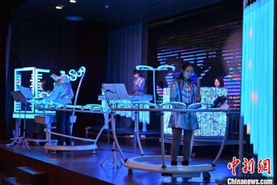 2月22日,在長(zhǎng)春中國(guó)光學(xué)科學(xué)技術(shù)館,小朋友在體驗(yàn)光學(xué)樂器。當(dāng)天,由該館工作人員組成的OMI樂隊(duì)為觀眾獻(xiàn)上了一場(chǎng)精彩演出,他們利用由傳感器和其他光學(xué)元件制成的光學(xué)樂器,結(jié)合專業(yè)的電子音源,通過(guò)用手或鼓棒遮擋光束來(lái)產(chǎn)生電信號(hào),觸發(fā)音源,發(fā)出聲音和變換顏色。這種演奏方式仿佛是通過(guò)敲擊空氣來(lái)演繹美妙的樂曲。中新社記者 張瑤 攝