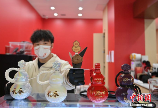 3月12日,在長春一家商場(chǎng)的中藥甜品店,工作人員在舀取中藥冰淇淋。這家中藥甜品店將刺五加、人參、靈芝等中藥與傳統(tǒng)甜品相結(jié)合,推出了中藥冰淇淋、中藥茶飲等產(chǎn)品,吸引大量民眾體驗(yàn)。(中新社記者 張瑤/攝)