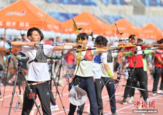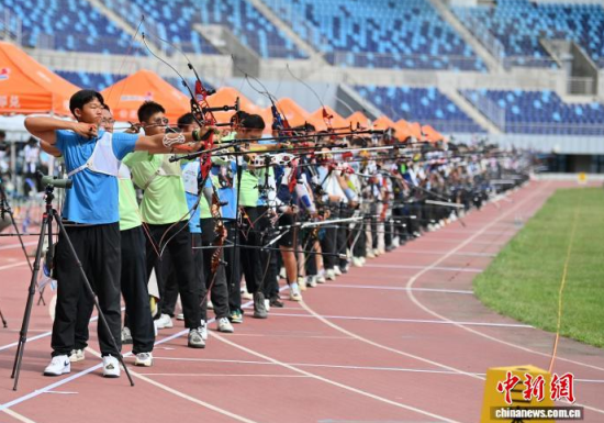 8月21日,吉林長春,運動員參加比賽。 當日,2025年全國射箭U16、U18錦標賽在長春開賽,中國各地96支射箭隊的721名運動員張弓搭箭,一較高下。 中新社記者 張瑤 攝