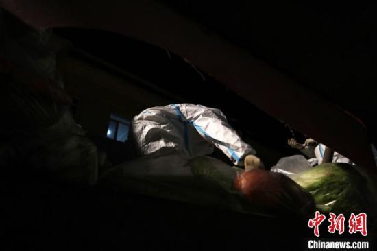 中新網(wǎng)通化1月26日電 (蒼雁 孫博妍)雖然已到26日凌晨,通化卻并未“睡去”。一輛滿載蔬菜的面包車快速駛過落雪的街路,停在左岸樺苑A區(qū)門前!斑@是‘今天’(25日)到達(dá)的最后一輛送菜車!