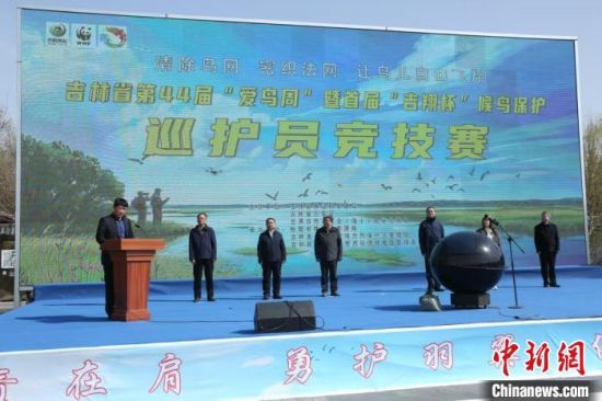 中新網(wǎng)松原4月23日電 (張瑤 魏靜 王靖)23日,吉林省第44屆“愛鳥周”暨首屆“吉翔杯”候鳥保護(hù)巡護(hù)員競技賽啟動(dòng)儀式在吉林查干湖國家級(jí)自然保護(hù)區(qū)舉行。