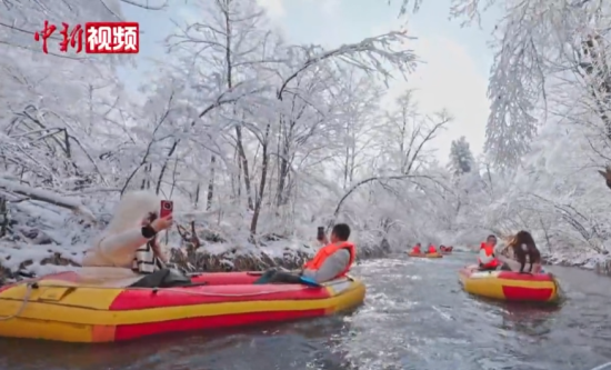 吉林白山:游人冬日漂流穿越“童話之境”
